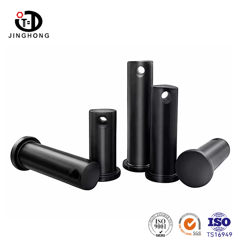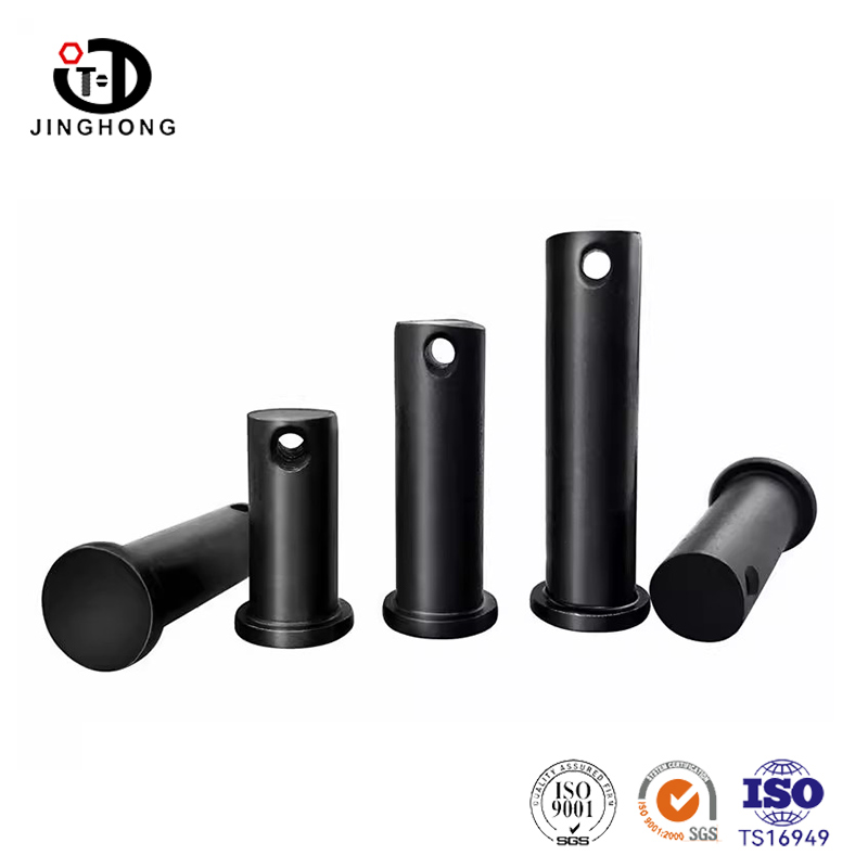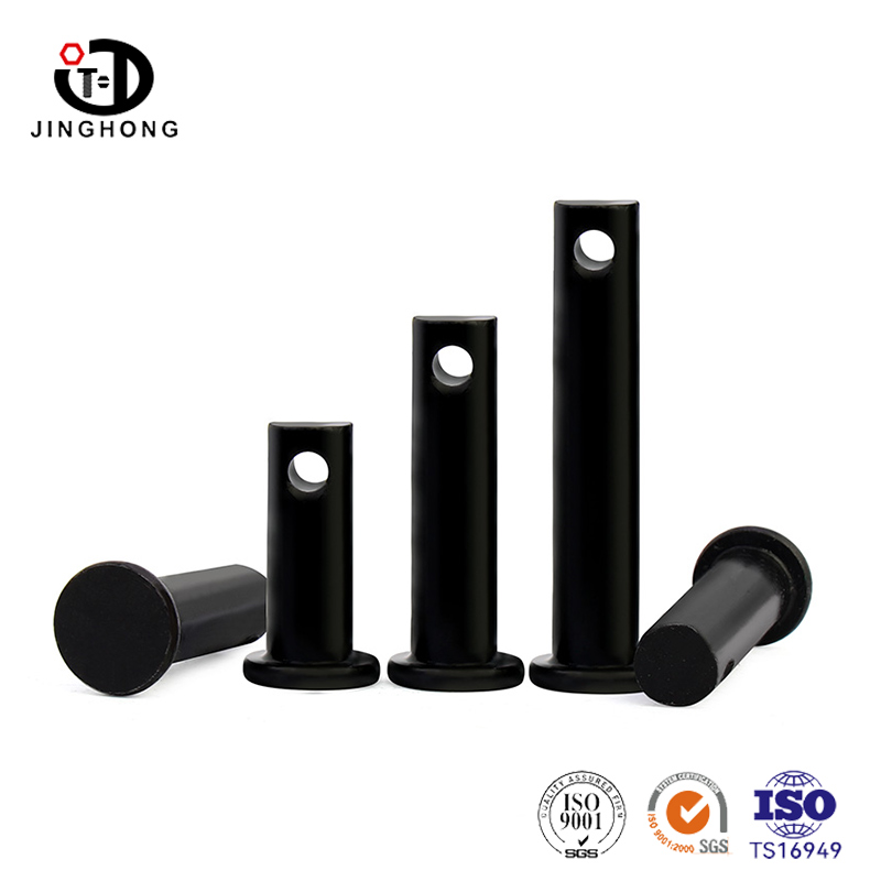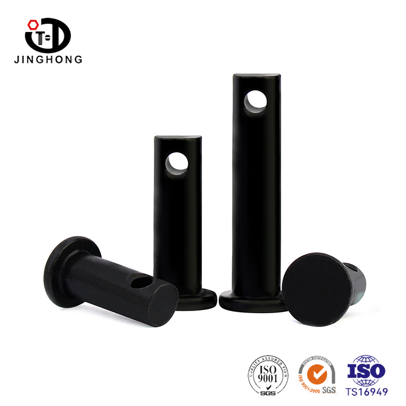 El pasador negro de cabeza plana con orificio es un sujetador con componente de cabeza plana y orificio. La cabeza plana de este tipo de pasador es fácil de insertar en la pieza de instalación y su superficie plana puede proporcionar una buena superficie de soporte. Además, se puede insertar un pasador hendido o un pasador de seguridad en el orificio para hacer la conexión más confiable y evitar que se afloje y se caiga. Este tipo de pasador es aplicable a todo tipo de situaciones de montaje mecánico y puede utilizarse en situaciones que requieran aplicaciones de conexión estable y segura.