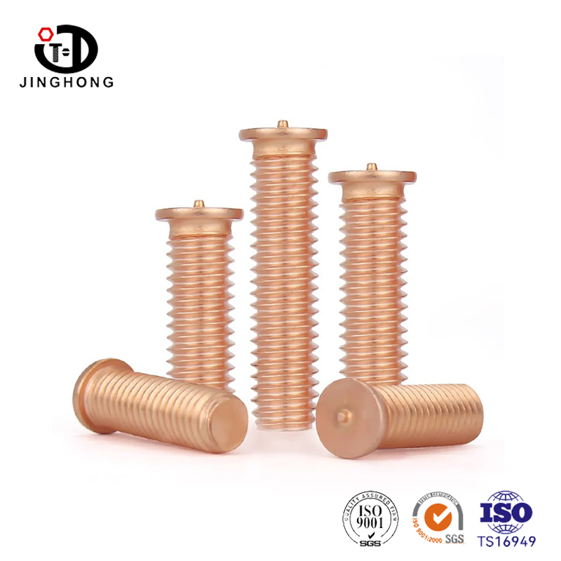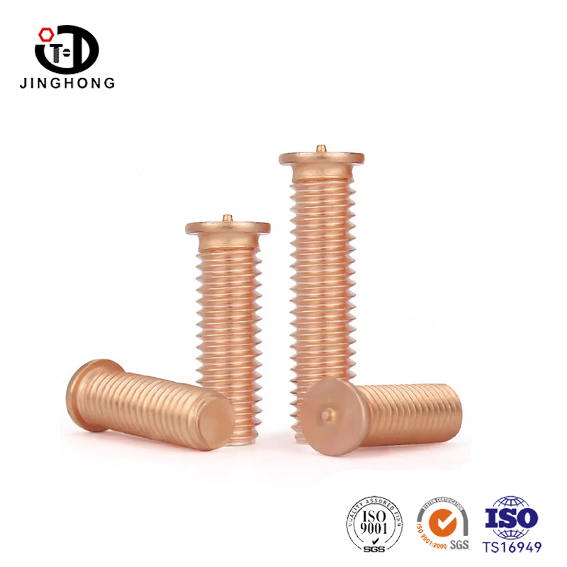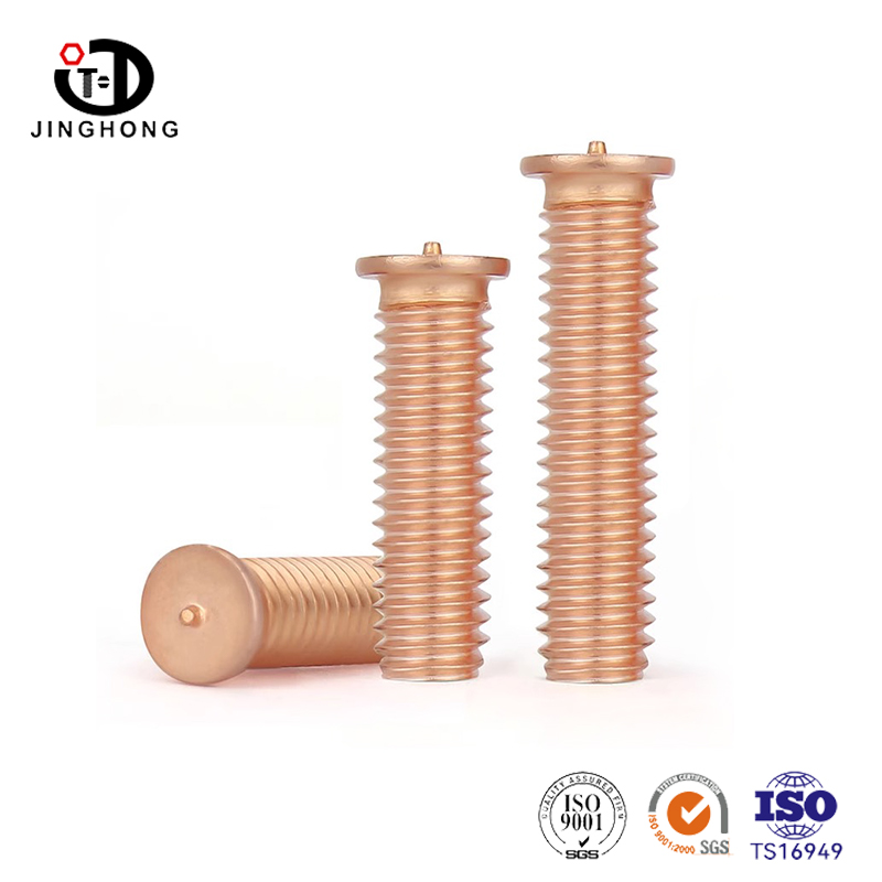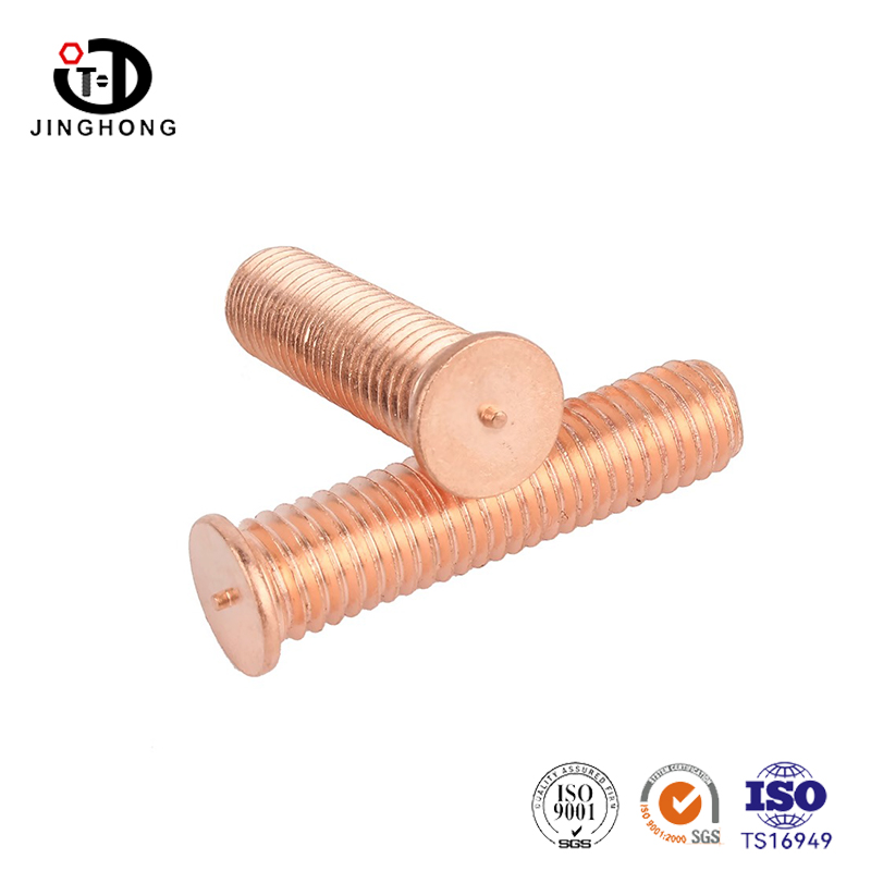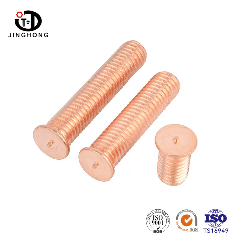 Los tornillos de soldadura de revestimiento de cobre Jinghong están hechos de acero al carbono de alta calidad y se electrochan de manera uniforme. El revestimiento de cobre es altamente conductivo y anticorrosivo. El grosor de revestimiento de cobre sigue el estándar industrial y los tornillos proporcionan un contacto de soldadura confiable y una larga vida útil sin oxidación. Son ideales para sujetar electrodomésticos y maquinaria industrial.