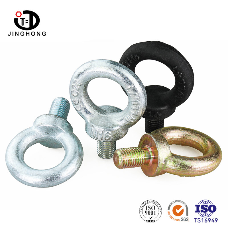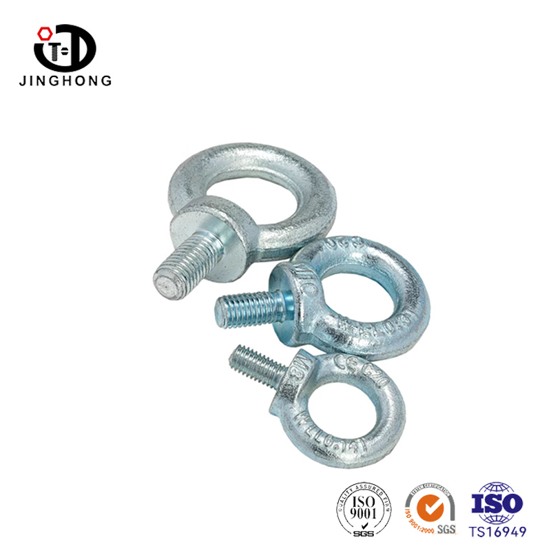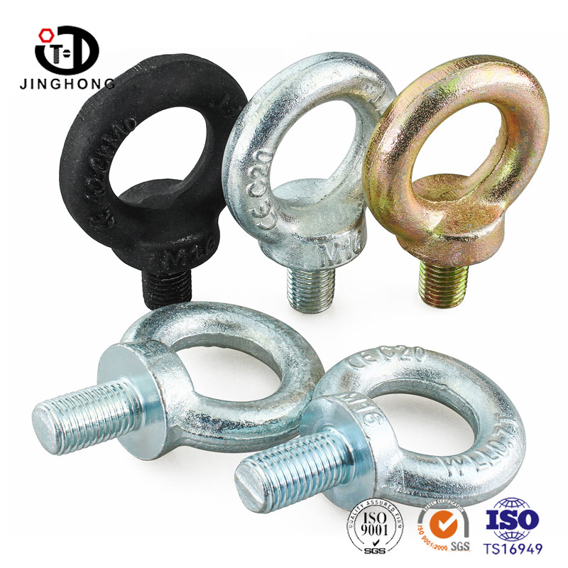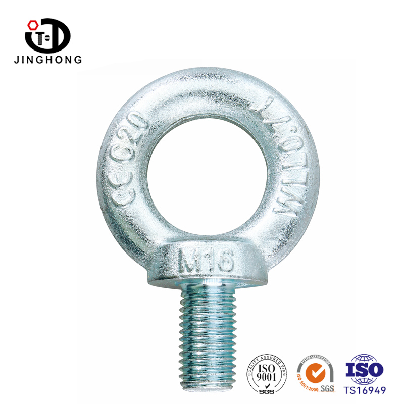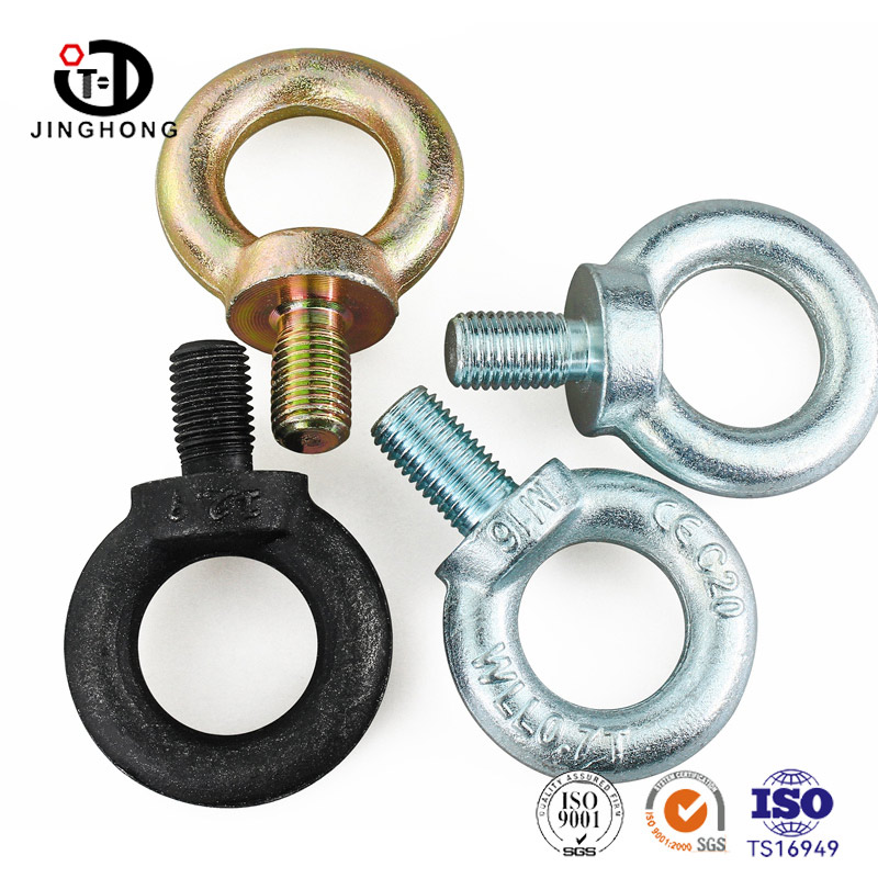 Los pernos de los ojos generalmente están hechos de acero de alta resistencia para garantizar la durabilidad y la capacidad de carga. El cebolio tiene una porción roscada que se puede atornillar de forma segura en estructuras o componentes compatibles. El anillo en la parte superior del orificio o perno está diseñado para acomodar varios hardware de elevación, como ganchos, grilletes o hondas. Los tornillos de los ojos chapados con zinc se etiquetan generalmente con información relevante, incluidas las marcas del fabricante, el grado de material y la capacidad de carga. Estos ojos tienen capacidad de carga específica y deben usarse dentro del rango de carga de trabajo especificado para garantizar la seguridad.